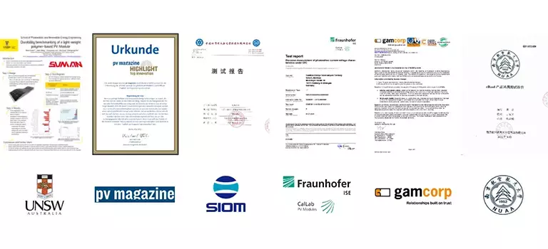 Weltweit führende Hersteller ultraleichter und glasfreier Solarmodule basierend auf kristallinem Silizium isteinzigartig.Weltweit wurden Lieferungen von über 600 MWausgeliefert. Die Produktionskapazität beträgt 1GW proJahr.